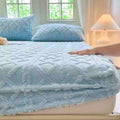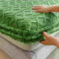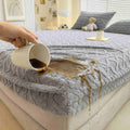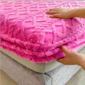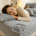 Tejido superior de terciopelo premium · reverso sherpa densa · costuras reforzadas · ajuste profundo hasta 45 cm.